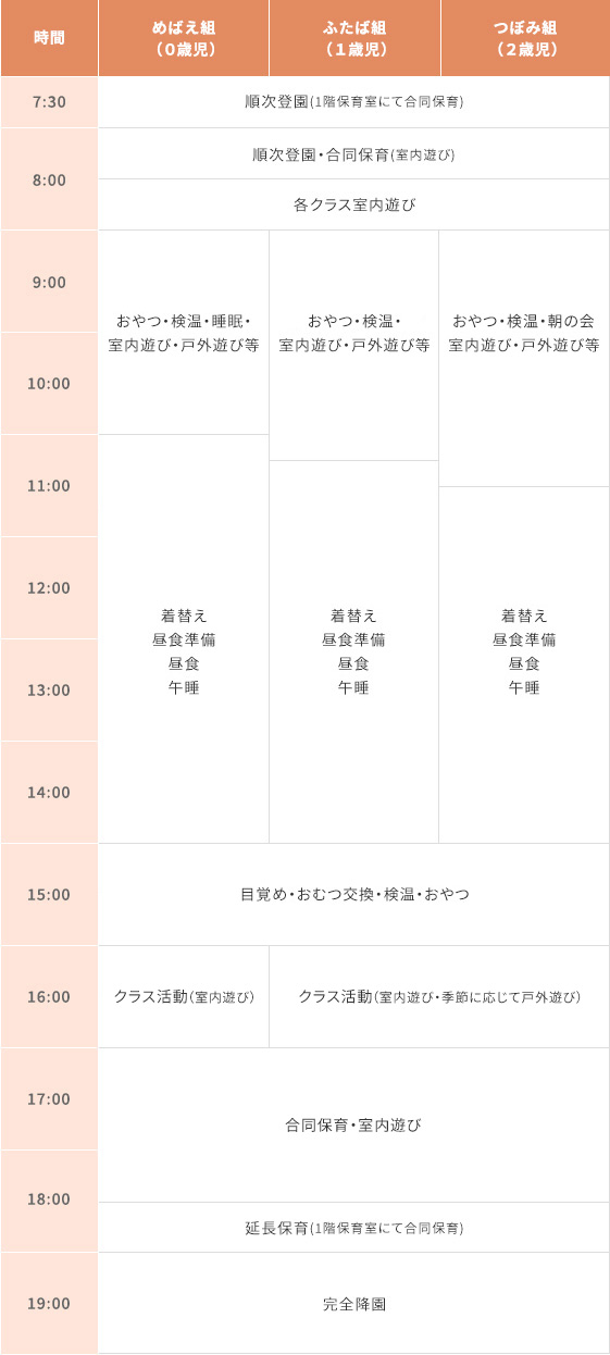 0歳児は5分間隔・1歳児は10分間隔・2歳児は15分ごとに睡眠チェックを行い、呼吸確認します。