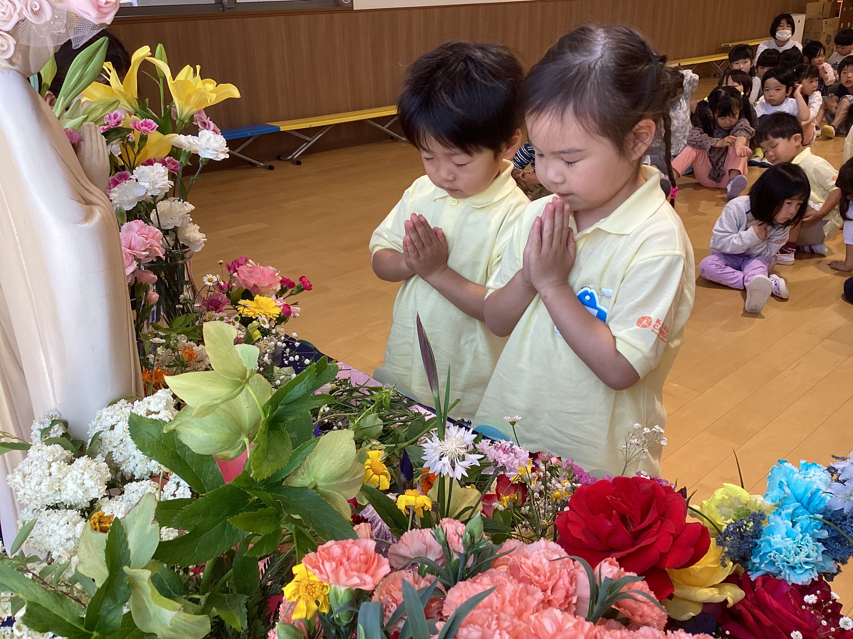 マリア様に日頃の感謝の気持ちを込めて、お花を捧げました。